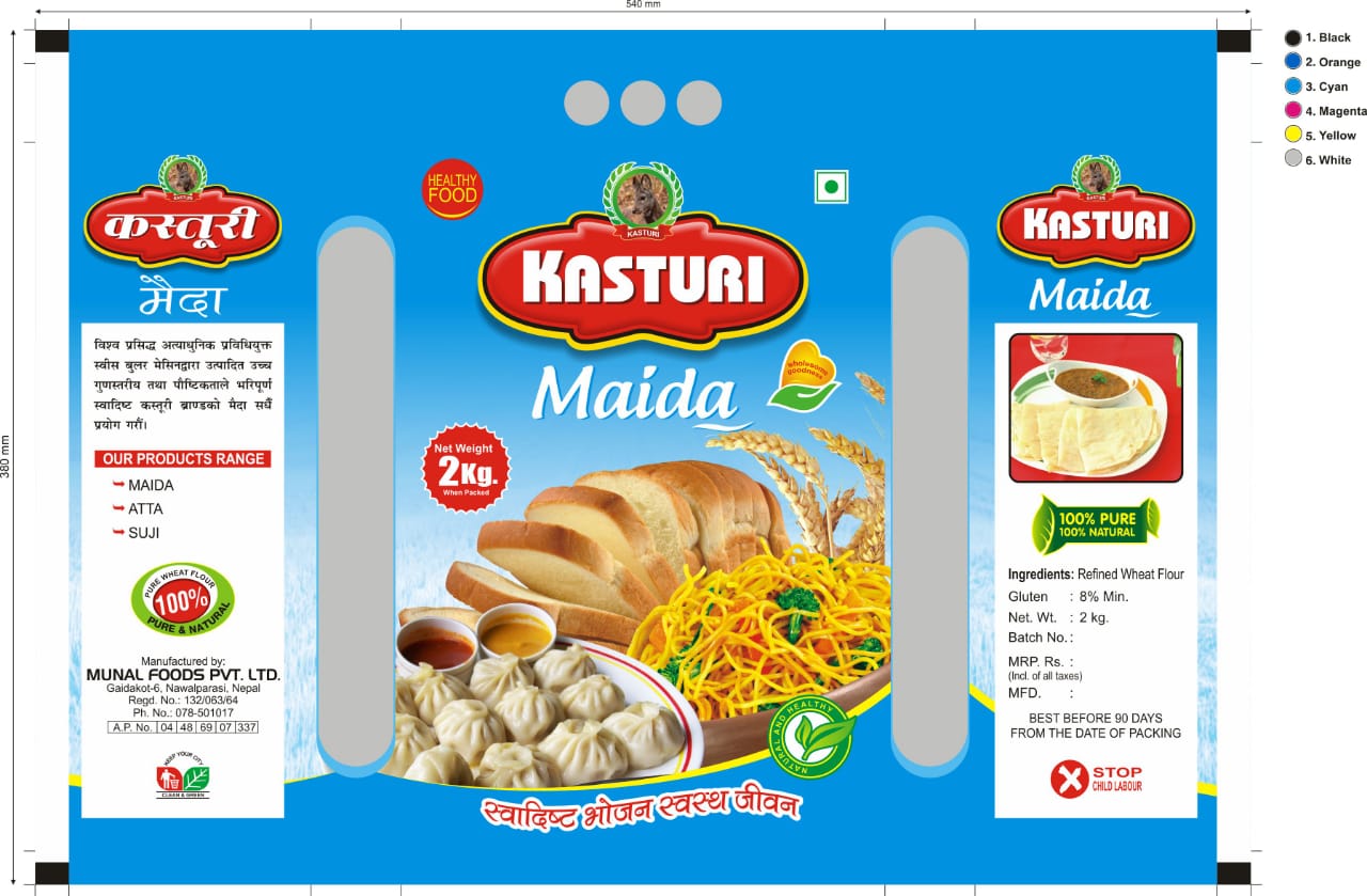 Introducing another product Kasturi Maida, contains refined wheat flour. Gluten is added 8% Min.